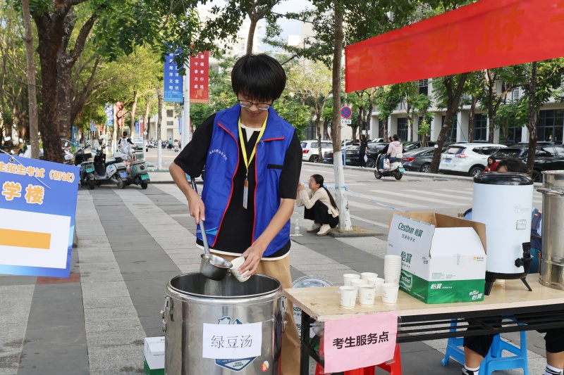 校园环境布置彰显人文关怀。从校门至考场沿途,“诚信求学,诚信求知,诚信考试”“严肃考风考纪,树立优良学风”等标语清晰醒目。志愿者队伍活跃在考务工作各个环节,成为保障考试顺畅运行、传递校园温情的重要力量。学校在严明考风考纪的同时,也为考生提供贴心周到的暖心服务。